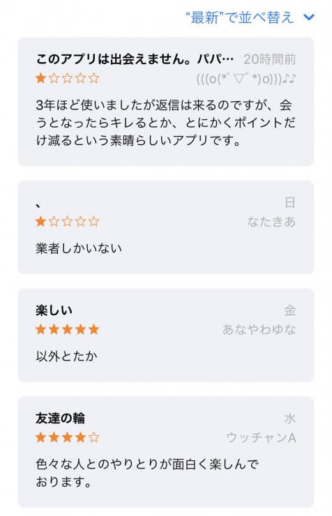 しかも、プロフィール閲覧や写真閲覧をしたけどタイプじゃなくてポイントだけ消費されて終わるパターンもあると思います。