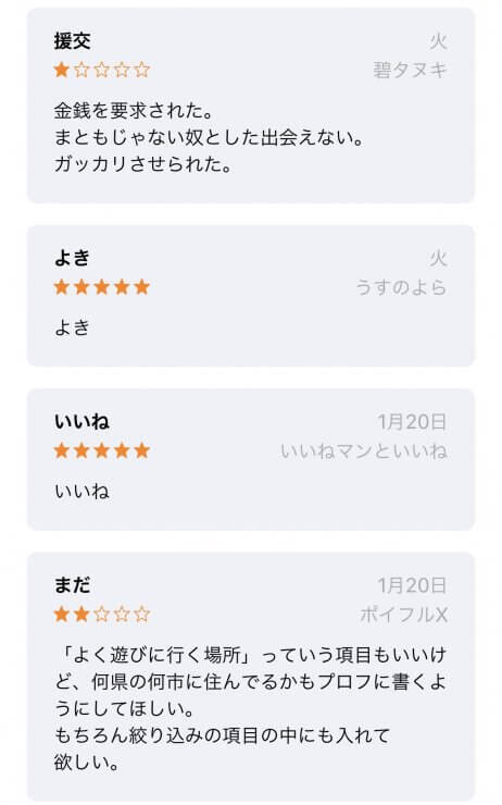 口コミに多々出てきた「援交(援助交際)」、「業者」の存在です。