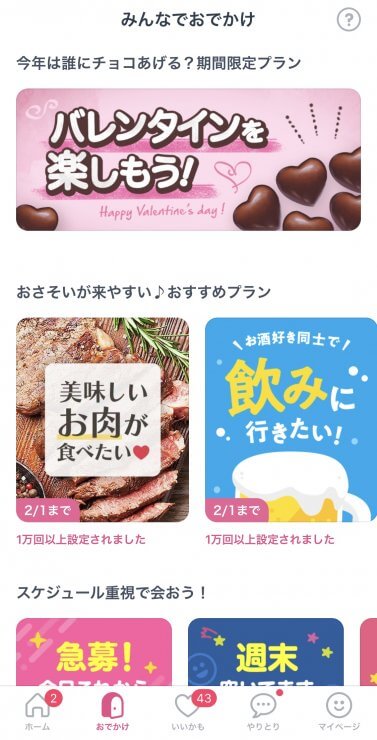 また、「おでかけ機能」で思い立った即日にデートすることも可能です。