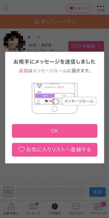 その後は、メッセージ交換をして仲良くなっていく感じです。