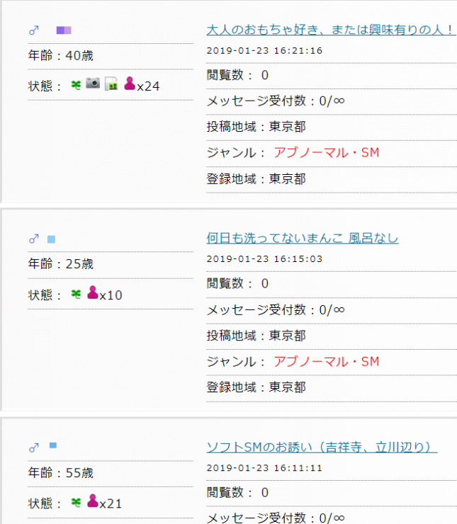 「友達・恋人探し」と書かれていますが、実質はセフレ・売春探しの方ばかりです。